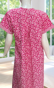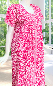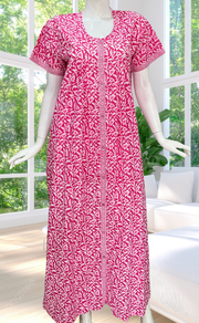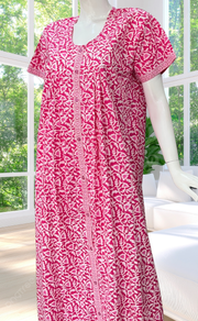 Pink Floral Full Open Pure Cotton Nighty. Pure Cotton | Laces and Frills