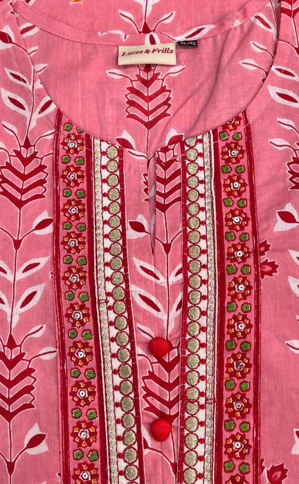 Pink Floral Jaipuri Cotton Kurti. Pure Versatile Cotton. | Laces and Frills