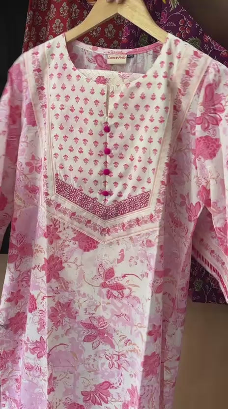 Pink Garden 2 Piece set Jaipur Cotton Kurti With Palazzo set . Pure Versatile Cotton. | Laces and Frills