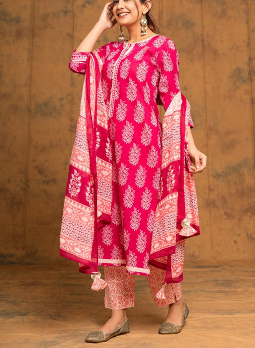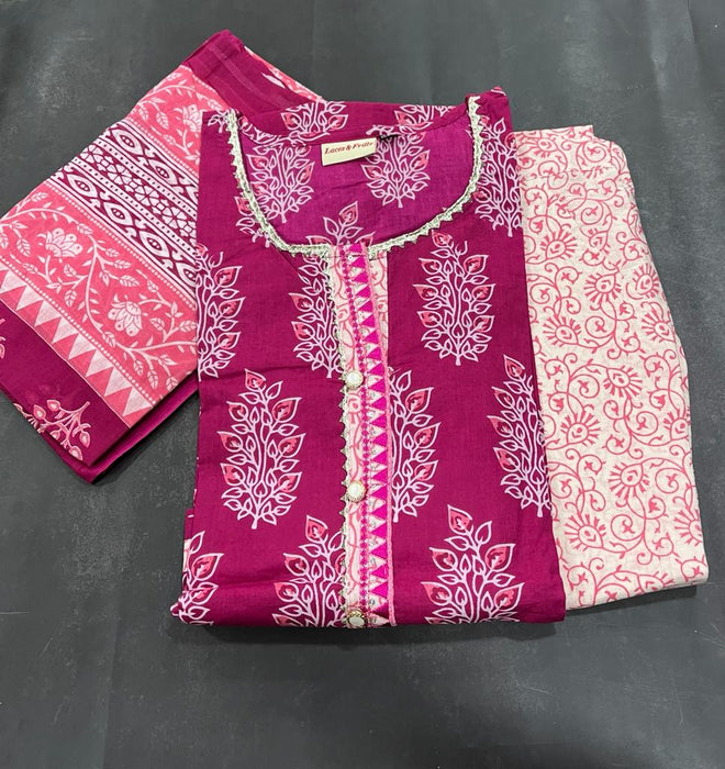 - Premium Jaipuri Cotton With Pant/Dupatta Set.