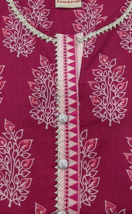 Pink Mughal Motif Kurti With Pant And Dupatta Set .Pure Versatile Cotton. | Laces and Frills