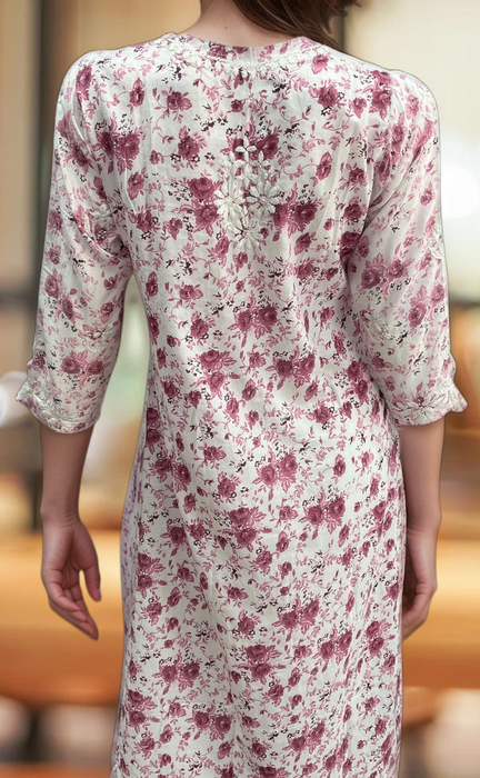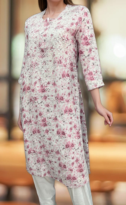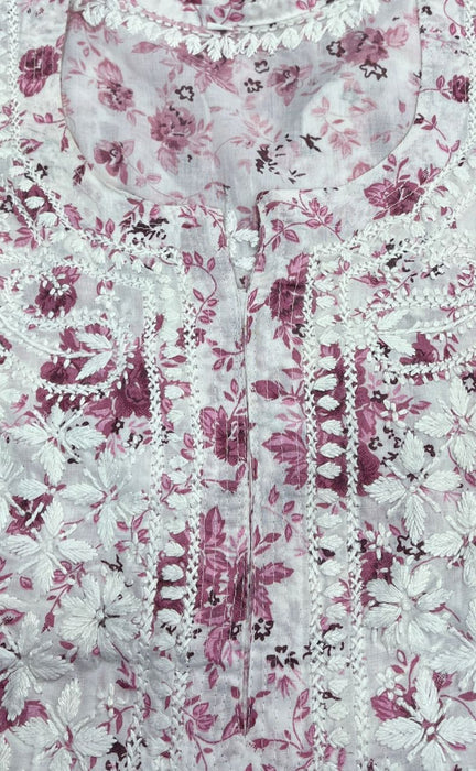 Pink/White Lucknowi Chikankari Embroidery Kurti. Versatile Cotton Fabric. | Laces and Frills