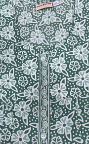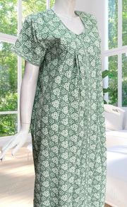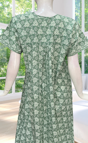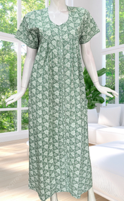 Pista Green Floral Full Open Pure Cotton Nighty. Pure Cotton | Laces and Frills