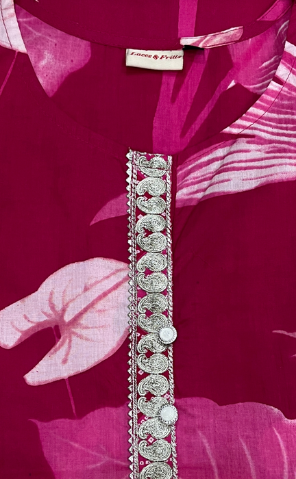 Rani Pink Floral Jaipur Cotton Kurti With Pant And Dupatta Set. Pure Versatile Cotton. | Laces and Frills