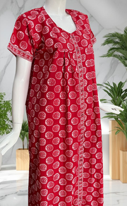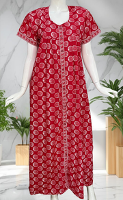 Red Abstract Full Open Pure Cotton Nighty. Pure Cotton | Laces and Frills