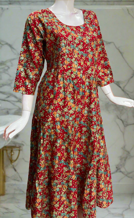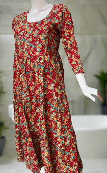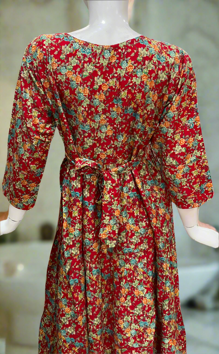 Red Garden Rayon Feeding Nursing Nighty. Flowy Rayon Fabric | Laces and Frills