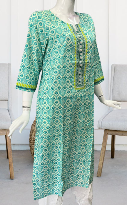 Sea Green Floral Jaipuri Cotton Kurti. Pure Versatile Cotton. | Laces and Frills