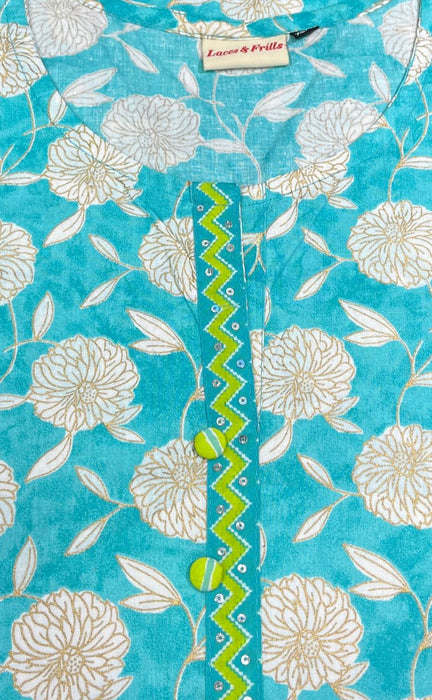 Sea Green Garden Jaipuri Cotton Short Kurti. Pure Versatile Cotton. | Laces and Frills