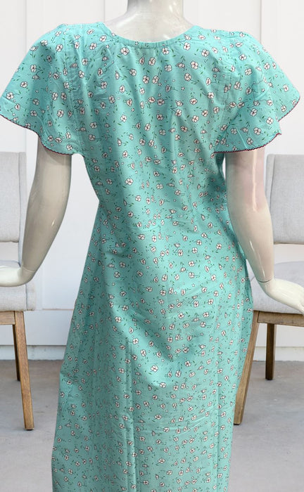 Sea Green Tiny Floral Pure Cotton Nighty. Pure Durable Cotton | Laces and Frills