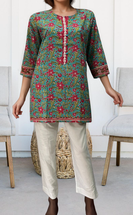 Fabric - "Pure cotton" - The cotton used in the garment is pure Jaipuri cotton. Pure Jaipuri Cotton is very popular because it is versatile and durable and ideal for making Kurtis for hot and humid conditions.