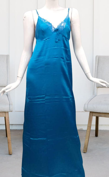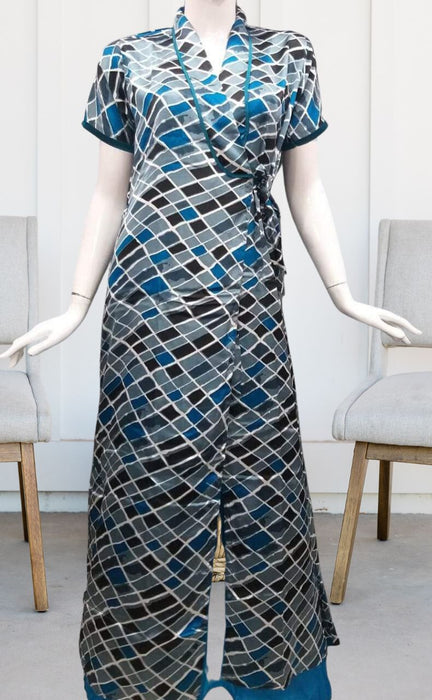 Sky Blue Satin House Coat Set. Soft Silky Satin | Laces and Frills