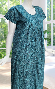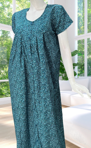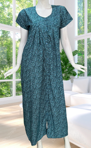 Teal Green Garden Full Open Soft Cotton Nighty. Soft Breathable Fabric | Laces and Frills