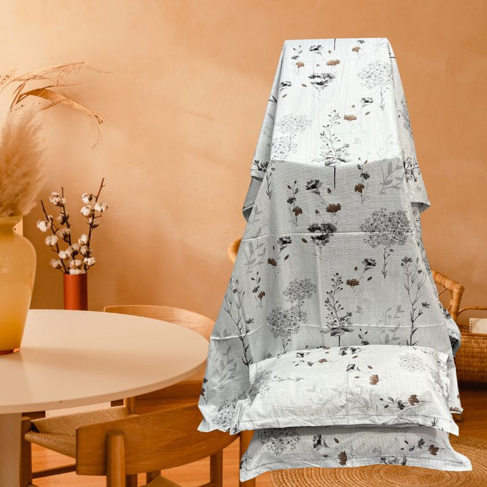 White/Brown Garden Double Bedsheet with Pillow Covers/108" x 108"
