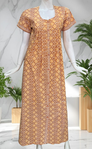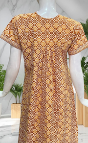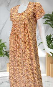 Yellow Abstract Full Open Pure Cotton Nighty. Pure Cotton | Laces and Frills