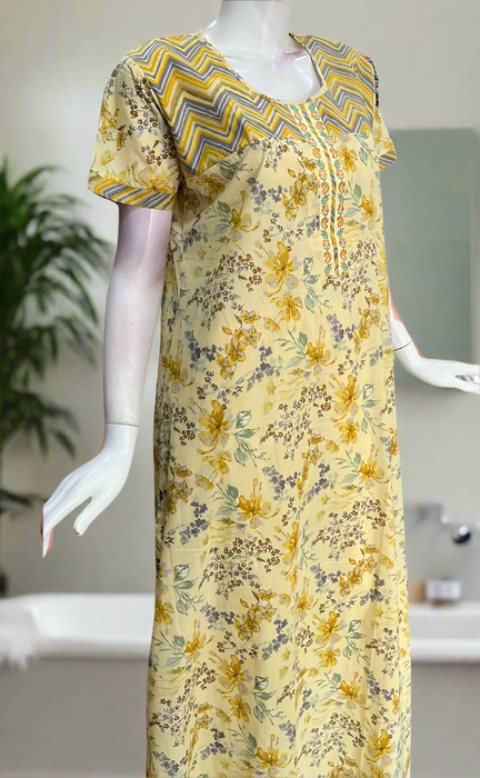 Yellow Floral Pure Cotton Nighty. Pure Durable Cotton | Laces and Frills
